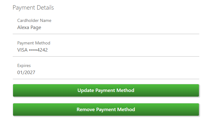 4. Scroll down to the Payment Details section and click the “Remove Payment Method” button.