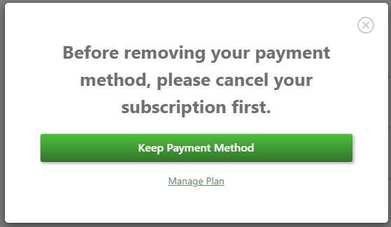 Note: If the Auto-Renewal is enabled, you will be asked to first cancel it or keep the payment method. To cancel the auto-renewal, click on Manage Plan button then follow the cancellation process.