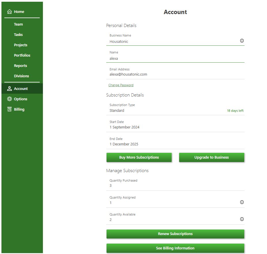 Note: Subscription will automatically renew. You can cancel your subscription by accessing the “Billing” tab in Project Plan 365 Portal.