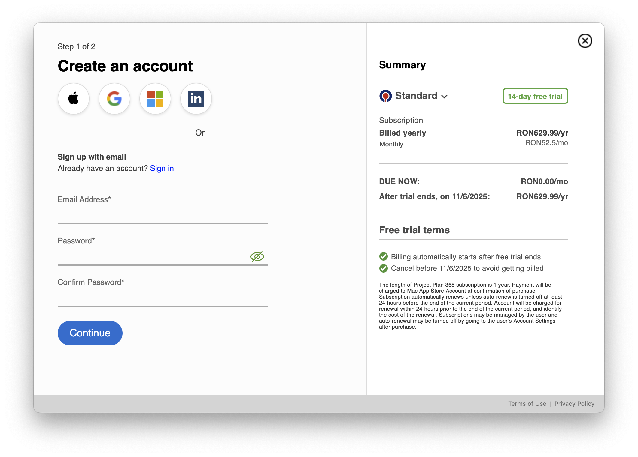 4. If you don’t have a Project Plan 365 account, Sign Up here.