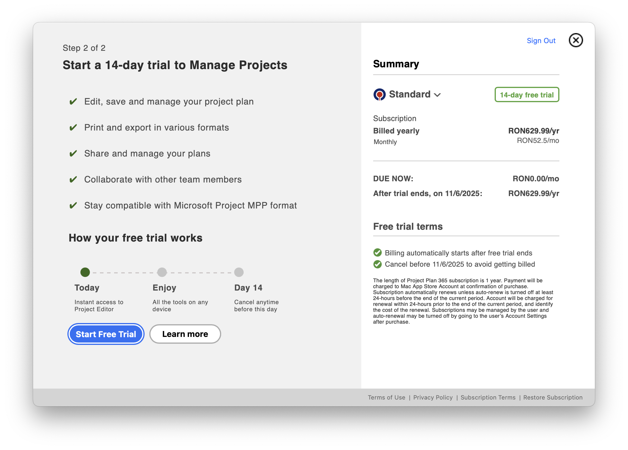 App Store Mac – Start 14-Day Trial and Purchase Standard Subscription
