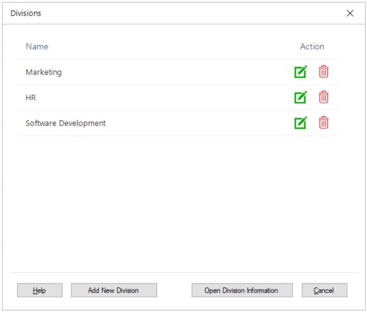 Online Help > Manage Divisions