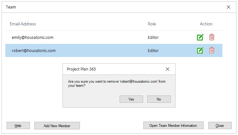 - Click Yes and fill in the desired information in the Add New Member dialog then click Add New Member button to add the user to your team.