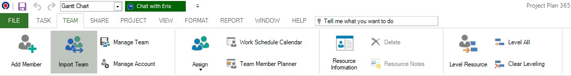 The menu "Team" can be found inside our application right next to the "Task" menu in the ribbon.