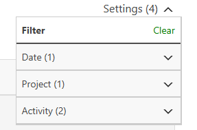 3. Select the desired filters for the Date, Project and Activity.