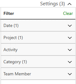 3. From the Filter section, select the desired filters for the Date, Project, Activity, Category and Team Member.