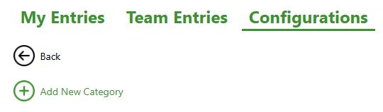To create a Category in Time Entries, in the Online Portal, go to Time Entries page – click Configurations – Categories – click “Add New Category” – type in a Name and click Save.