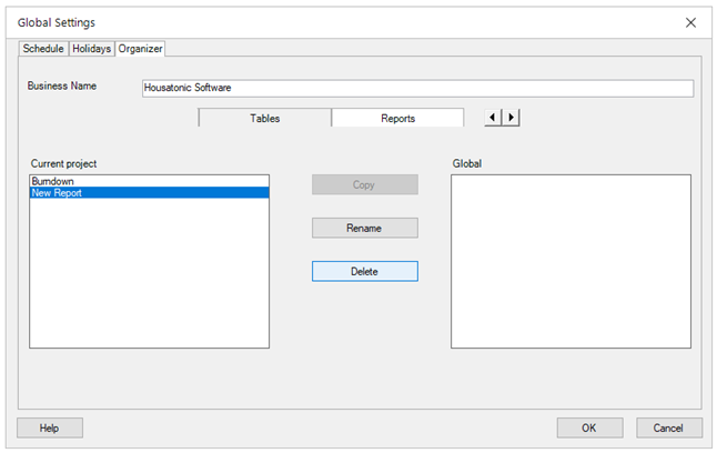 3. In the Global Settings dialog, in the Current Project section select the desired report and click Copy.