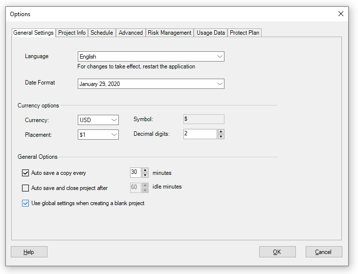 Note: In order for the copied visual reports to appear in all organization projects, use the New Project using Global Settings option from the File - New menu or go to menu File - Options and check the "Use global settings when creating a blank project option".