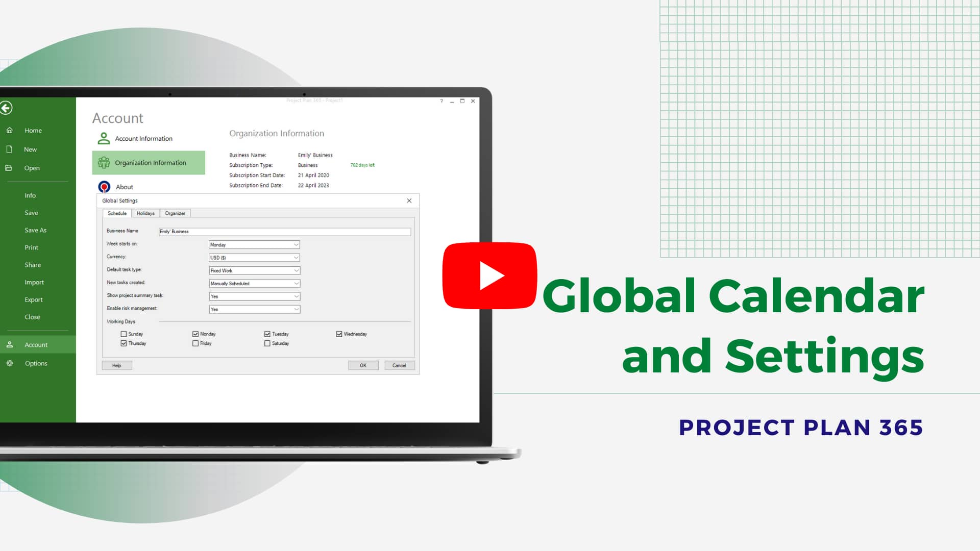 Project Plan 365 provides an easy way to change all the default settings for new projects and team members that are saved in all your organization projects.